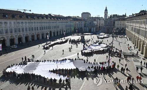 Public art performance by French artist JR in Turin