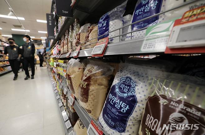 [서울=뉴시스] 김진아 기자 = 세계 설탕 가격이 최근 6년 만에 최고치로 치솟으면서 식품 가격 상승 요인이 될 것이라는 우려가 나오고 있는 8일 서울 한 대형마트에서 설탕이 판매되고 있다. 2023.02.08. bluesda@newsis.com