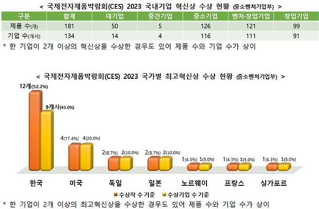 이는 9개 기업이 최고혁신상을 수상하며 참가국 중 가장 많은 수상기업을 배출한 한국의 위상을 우리 스타트업이 견인한 것과 다름없는 성과로 미래 기술을 선도하는 K-스타트업의 역량을 전 세계에 알릴 수 있었다.