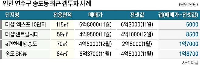 최근 인천 연수구 송도동 아파트 대상의 갭투자 사례가 늘고 있다.