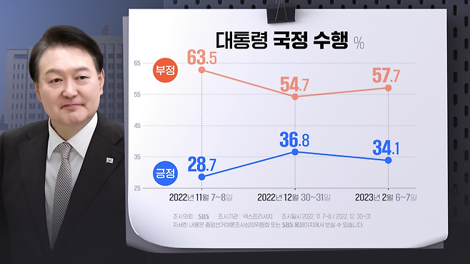 지난해 11월 SBS 여론조사에서 28.7%였던 긍정 답변은 12월 말 36.8%로 8.1%포인트 올랐다가 다시 2.7%포인트 하락했습니다.