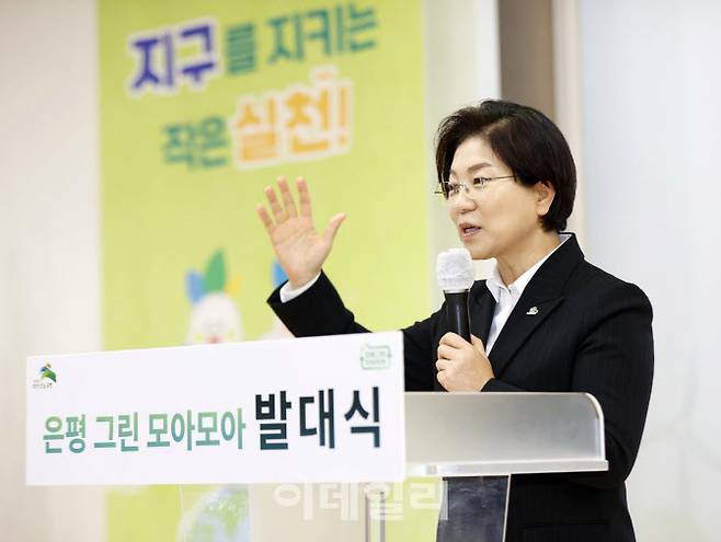 [이데일리 김태형] 김미경 은평구청장이 8일 주민주도 자원순환 사업인 '은평그린모아모아' 자원관리사 및 코디네이터 발대식에서 인사말을 하고 있다..