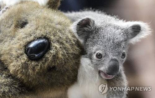 A little koala sits on a furry teddy bear to be weighed at the zoo in Duisburg, Germany, Wednesday, Feb. 8, 2023. The little bear was born in July last year, but was invisible for the public in its mothers' pouch. The so far unnamed koala joins the largest koala group in Europe at the breeding and competence center in Duisburg. (AP Photo/Martin Meissner)