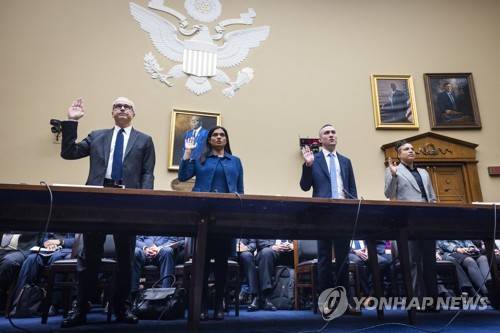 epa10455049 Former Deputy General Counsel of Twitter James Baker (L), former Chief Legal Officer of Twitter Vijaya Gadde (C-L), former Global Head of Trust and Safety of Twitter Yoel Roth (C-R), and Anika Collier Navaroli (R), a former Twitter employee, are sworn-in prior to testifying before a House Oversight and Accountability Committee hearing about Twitter's handling of a news story on Hunter Biden's laptop in the Rayburn House Office Building in Washington, DC, USA 08 February 2023. EPA/JIM LO SCALZO