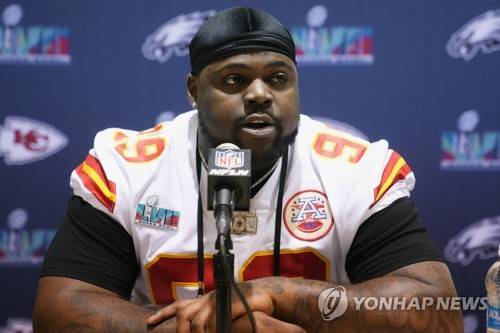 Kansas City Chiefs defensive tackle Khalen Saunders answers a question during an NFL football Super Bowl media availability in Scottsdale, Ariz., Wednesday, Feb. 8, 2023. The Chiefs will play against the Philadelphia Eagles in Super Bowl LVII on Sunday. (AP Photo/Ross D. Franklin)