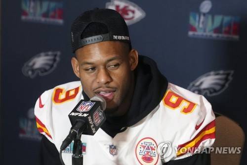 Kansas City Chiefs wide receiver JuJu Smith-Schuster answers a question during an NFL football Super Bowl media availability in Scottsdale, Ariz., Wednesday, Feb. 8, 2023. The Chiefs will play against the Philadelphia Eagles in Super Bowl LVII on Sunday. (AP Photo/Ross D. Franklin)