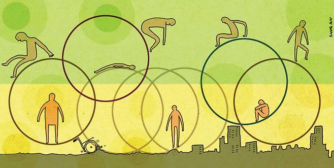오래전 “나는 김포공항에만 내리면 장애인이 된다”라는 제목을 단 기사를 읽은 적이 있다. 미국에 사는 젊은 교포 청년의 이야기였는데 자기 거주지에서는 장애인이라는 것을 의식하지 못하고 생활하다가 한국에만 오면 매 순간 자기가 장애인이라는 것을 느낀다는 이야기였다. 나는 신체적 손상이 활동의 무능력이 되는 것은 자연스러운 귀결이 아니라 사회적 배치의 산물이라는 것을 그때 비로소 알게 되었다. 페미니스트 철학자 주디스 버틀러는 그것을 간명하게 “장애(disability)는 손상(impairment)이 사회적으로 조직된 결과”라고 말한다.