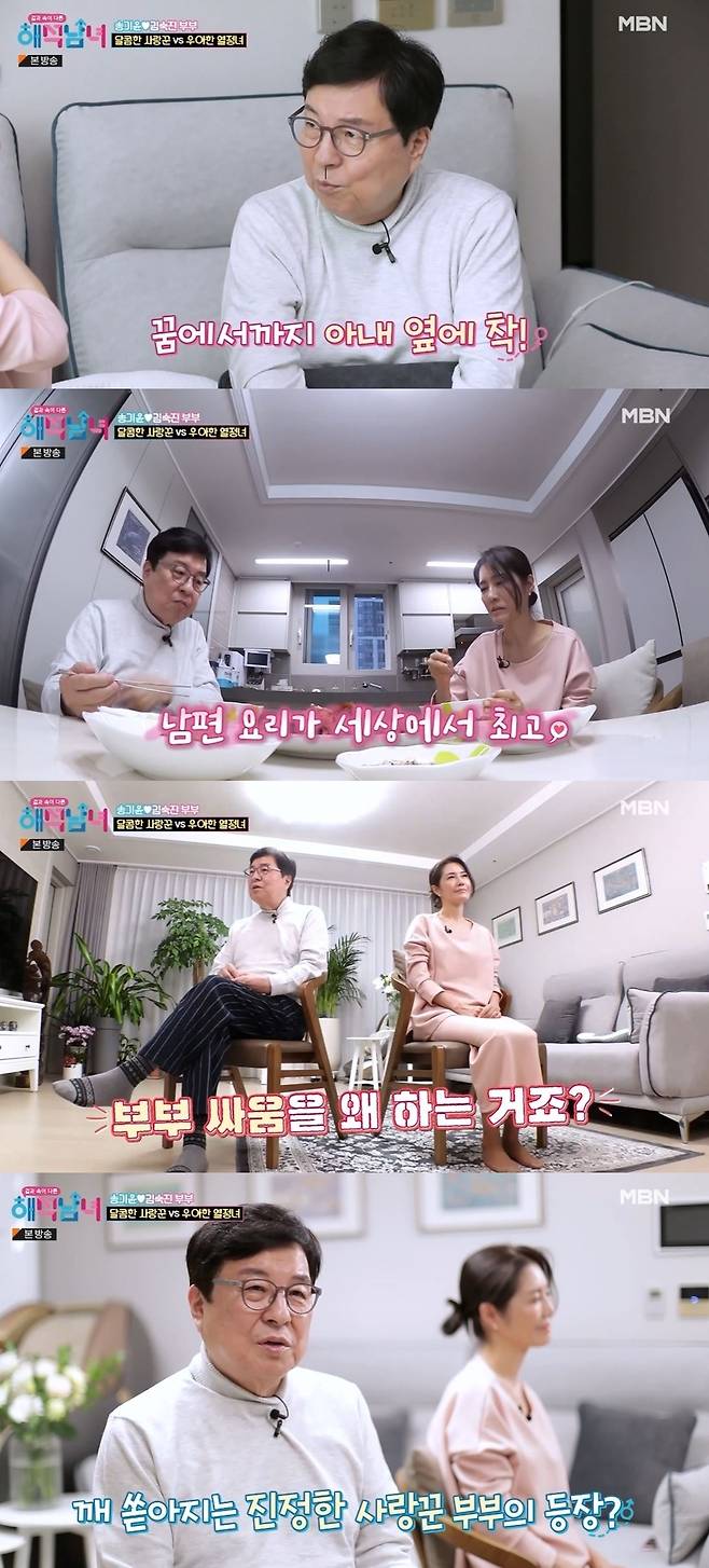 2월 8일 방송된 MBN '겉과 속이 다른 해석남녀'에는 배우 송기윤과 아내 김숙진이 출연했다.