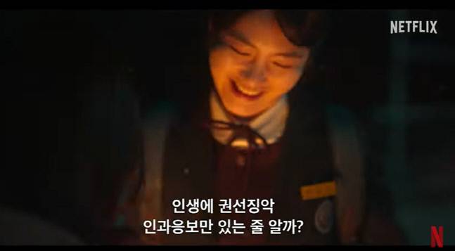 넷플릭스는 9일 티저 예고편에서 끔찍한 학폭 가해자그룹에게 송혜교가 경고했던 "이제부터 하루하루가 스산할거야"라던 복수극을 살짝 공개했다.