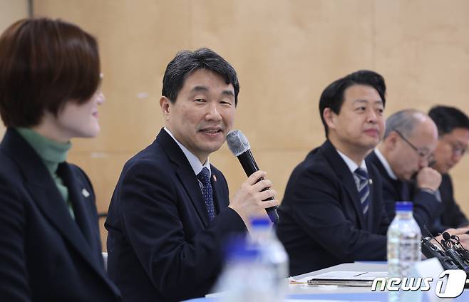 (서울=뉴스1) 이승배 기자 = 이주호 사회부총리 겸 교육부 장관이 9일 오전 서울 서대문구 가재울초등학교에서 열린 교육·돌봄 국가책임 강화를 위한 늘봄학교 관련 교원·학부모 현장 간담회에 참석해 모두발언하고 있다. (공동취재) 2023.2.9/뉴스1