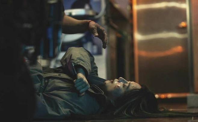 또 다른 사진에서는 판빙빙이 바닥에 누워 누군가를 향해 흉기를 겨누고 있다. 얼굴은 피투성이가 돼 절체절명의 순간임을 암시했다.