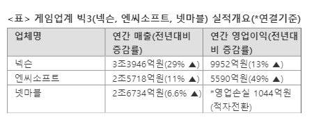 게임업계 빅3인 넥슨, 엔씨소프트, 넷마블이 지난해 '신작 흥행' 여부에 따라 실적이 엇갈렸다.