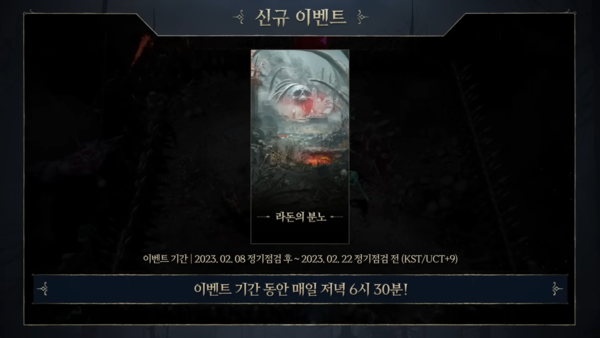 '더블업 혈맹 이벤트'와 '검은 전함의 아데나 주머니' 이벤트도 함께 진행된다. 혈맹 레이드에서 라돈과 스피리드, 샌드웜을 처치할 경우 보상 상자와 토벌의 증표를 2배로 준다. 검은 전함은 아데나를 획득할 수 있는 '아데나 주머니'가 담긴 보물 상자가 출현한다.