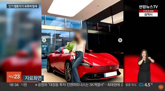 9일 연합뉴스TV는 인기 웹툰작가 A씨가 회사돈으로 슈퍼카를 사들이고 개인용도로 쓰며 탈세를 저질렀다고 보도했다.