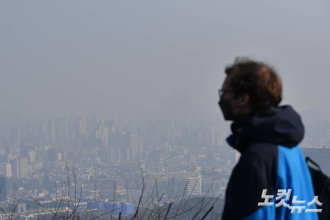 추위가 물러난 자리에 미세먼지가 찾아온 6일 오전 서울 남산에서 바라본 서울 도심이 뿌옇게 보이고 있다. 류영주 기자