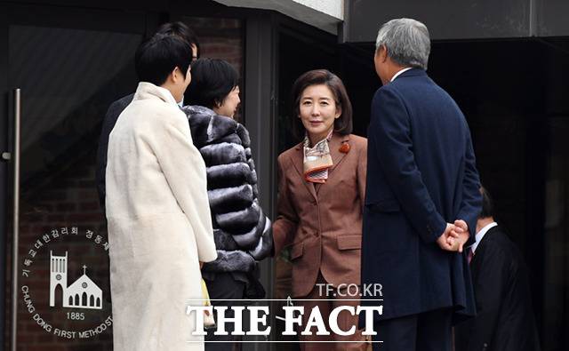 [더팩트ㅣ이새롬 기자] 나경원 전 의원이 11일 오후 서울 중구 정동제일교회에서 열린 정몽규 HDC그룹 회장의 장남 정준선 한국과학기술원(KAIST) 교수의 결혼식에 참석하고 있다.