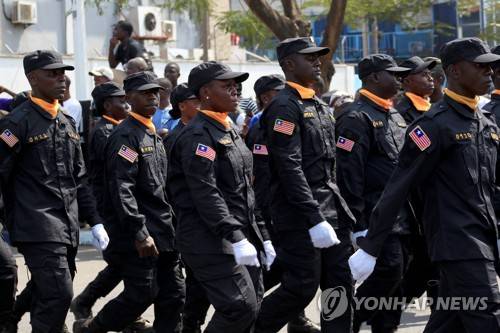 epa10462050 Officers of the Liberia Drug Enforcement Agency(LDEA), parade during the event in observance of Armed Forces Day at the Barclay Training Defense Headquarters in Monrovia, Liberia, 11 February 2023. Armed Forces Day is an annual event observed to celebrate the heroic sacrifices of men and women in arms in defense of the Liberian state. According to reports, in the 19th century, Liberia was protected by a militia, prior to the formation of the Armed Forces of Liberia (AFL), by an act of the National Legislature, and declared the day, as a National Holiday, followed with festivities, including military parades and ceremonies in honor of veterans and recognition of the Armed Forces protecting the territorial integrity of Liberia from foreign aggression. EPA/AHMED JALLANZO