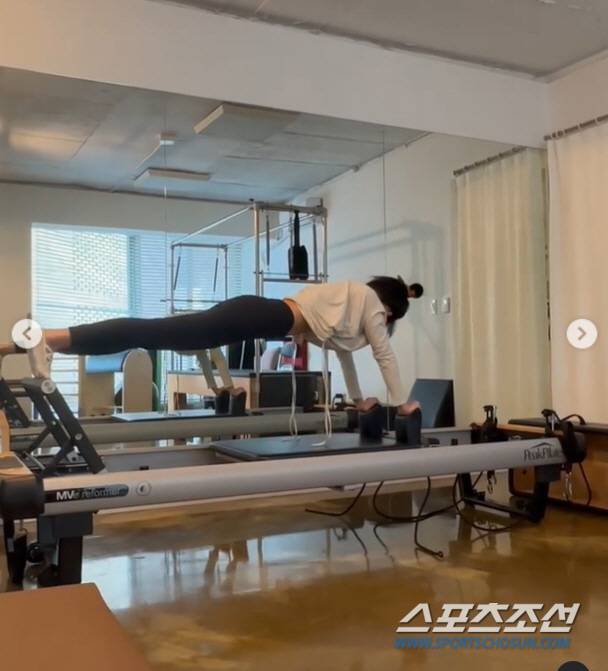 공개된 사진 속 제니는 필라테스 도구인 바렐에 살짝 배를 걸친 상태에서 긴 다리를 쭈욱 뻗어 고난도 포즈를 취하고 있다.