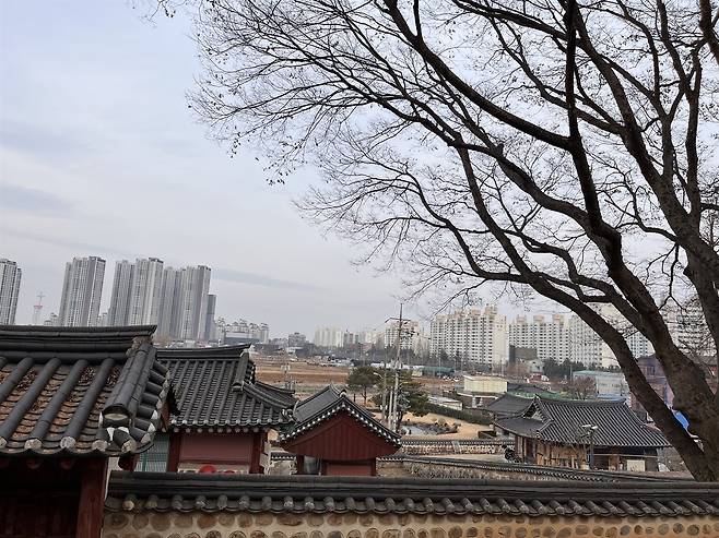 정성이 느껴지는 단정한 정원과 고풍스러운 한옥의 모습에 저도 모르게 '와…!' 하는 감탄사가 터져 나왔습니다. 그런데 참으로 기묘한 느낌이 들었어요. 벽돌이나 시멘트로 지어진 건물 사이에 오래된 한옥이라니. 시공간이 묘하게 얽혀있는 모습이었습니다.