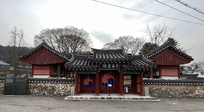 저는 사당 앞에 서서 서원의 풍경을 한 번 더 눈에 담고, 그의 추모비 앞에서 목례를 하고 나옵니다. 추모비 뒤로 200년이 된 나무가 이 모습을 지켜보고 있습니다. 굳건하고 듬직한 느낌이라 안심이 됩니다.