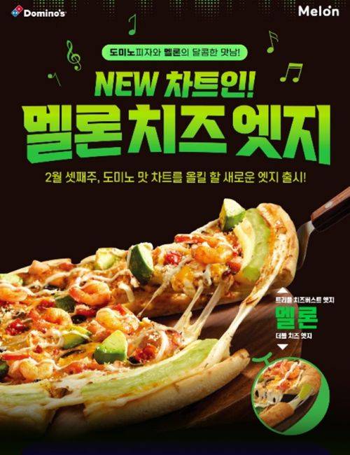 도미노피자는 밸런타인데이를 맞아 뮤직플랫폼 멜론과 협업해 '멜론 치즈 엣지 2종'을 선보였다고 13일 밝혔다.