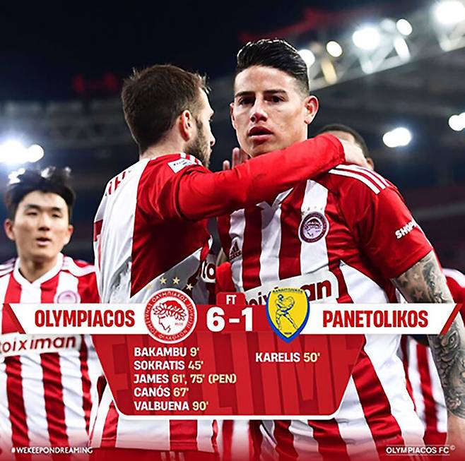 이어 전반 45분에는 소크라티스 파파스타토풀로스의 골이 터졌고, 후반에만 4골 추가하며 대승을 거뒀습니다.