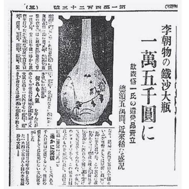 경매 이튿날 경성일보는 백자 사진과 함께 "조선백자가 1만 5천 원에 낙찰되었다"라며 대대적으로 보도하기도 했습니다.