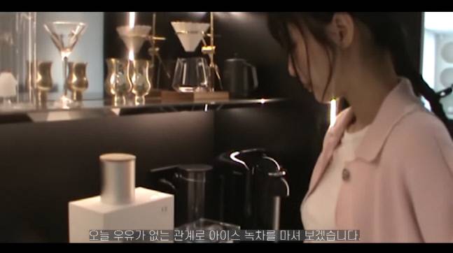 물이 데워지기 전 오늘의 패션을 소개한 제니는 자신의 녹차 기계도 자랑했다.