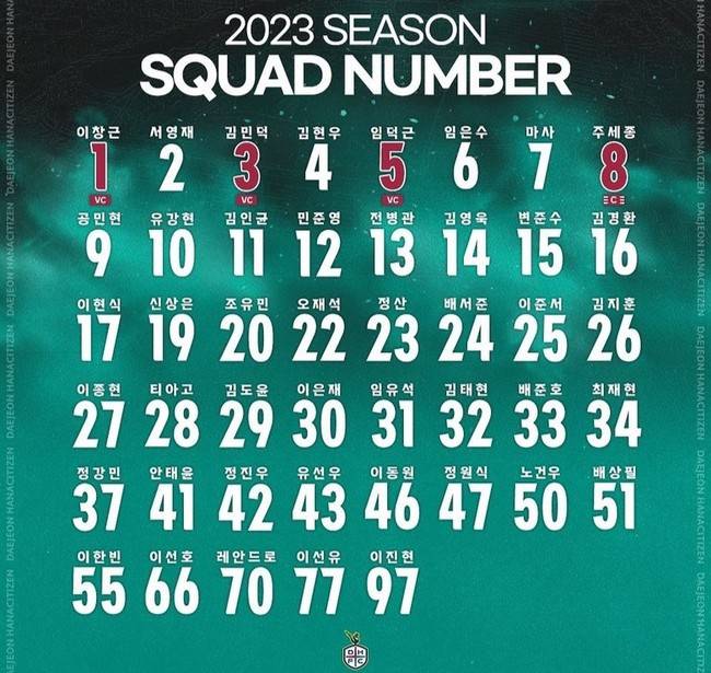 [인터풋볼] 신동훈 기자 = K리그1 도전에 나서는 대전하나시티즌이 2023시즌 선수단 등번호를 공개했다.