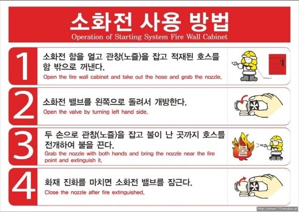 경남 창녕소방서는 지역 사회에 다문화가정, 외국인 근로자 등 외국인의 비율이 높아짐에 따라 옥내소화전에 한글과 영어를 동시 표기된 사용설명서 사용을 당부한다고 15일 밝혔다.