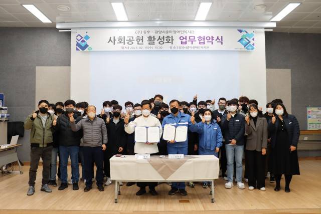 광양시중마장애인복지관(관장 정헌주)은 동후(대표이사 전상철)와 2월 15일(수) 장애인 복지증진 및 사회공헌활동 활성화를 위해 업무협약을 체결했다.