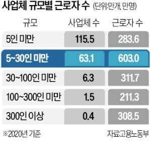 30인 미만 사업장에 예외 없이 주52시간제를 적용하는 건 시기상조라는 지적도 많다. 2004년 연장근로를 제외한 법정근로시간을 주 44시간에서 현행 40시간으로 줄일 때 20인 미만 사업장에 7년6개월의 준비기간이 부여됐다. 반면 주52시간제(법정근로 주 40시간+연장근로 12시간)가 2018년 도입된 뒤 30인 미만 사업장까지 확대되는 데 걸린 시간은 4년6개월에 불과하다.