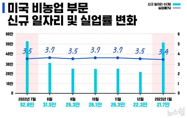 8월 이후 월별 신규 고용은 점차 줄었고 물가도 고점을 찍고 서서히 안정세에 접어들고 있었습니다. 그 사이 금리도 2% 포인트나 높아졌습니다. 파월 의장이 인플레이션 둔화를 인정할 만한 여러 조건들이 갖춰졌던 것입니다. 하지만, 결과적으로 고용 시장은 6개월 만에 제자리로 돌아왔습니다.