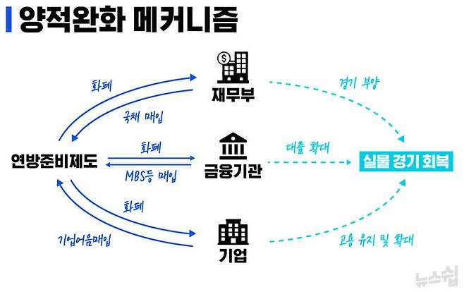 쉽게 이야기하면, 그동안은 위기를 극복하기 위해 돈을 풀었다면 이번에는 시장에 푼 돈 때문에 위기가 발생했다는 의미입니다. 실제로 코로나 팬데믹 초기 '락다운(봉쇄)'으로 경제는 마비됐고 실업률은 14.5%까지 치솟았습니다. 이때 미국이 택한 조치는 무제한적 '양적 완화(Quantitative Easing)'였습니다.
