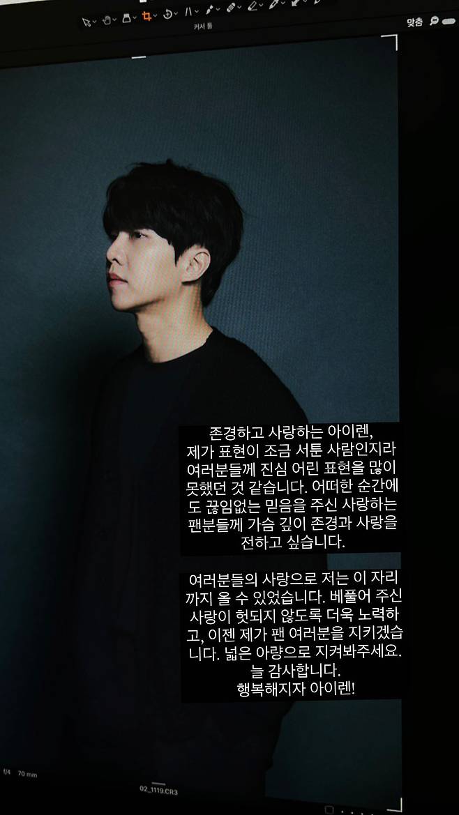이어 "여러분들의 사랑으로 저는 이 자리까지 올 수 있었다. 베풀어 주신 사랑이 헛되지 않도록 더욱 노력하고, 이젠 제가 팬 여러분을 지키겠다. 넓은 아량으로 지켜봐 달라. 늘 감사하다. 행복해지자 아이렌"이라고 전했다.