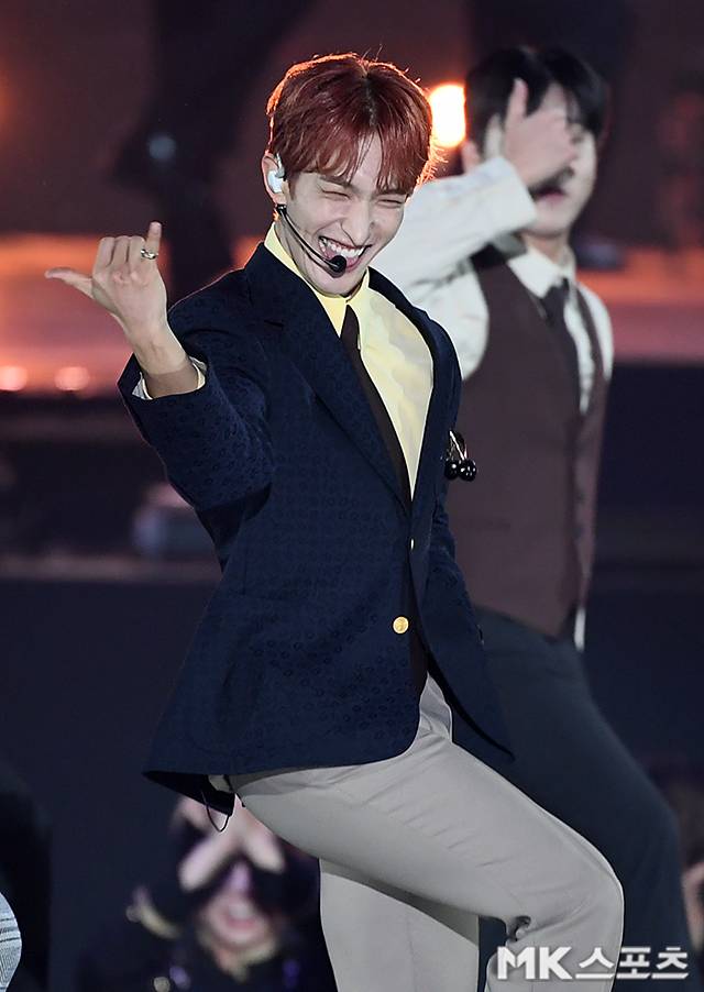 세븐틴 도겸이 멋진 무대를 선보이고 있다.