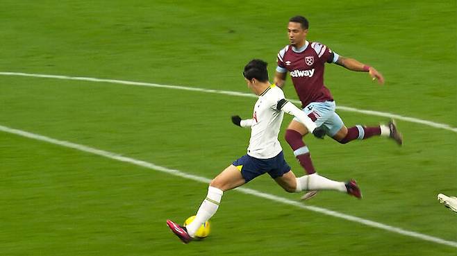 '단짝' 해리 케인이 공을 따낸 뒤, 쇄도하는 손흥민에게 패스를 건넸고, 손흥민은 완벽한 첫 터치에 이은 오른발 슛으로 웨스트햄 골망을 흔들었습니다.