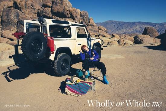 슈가는 화려한 무대 위의 모습이 아닌, 온전한 민윤기로 돌아갈 수 있는 최고의 순간으로 캠핑을 꼽으며 'Wholly or Whole me'를 화보의 테마로 삼았다.