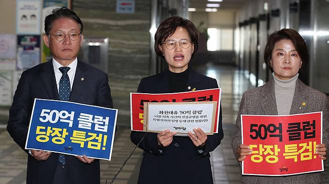 법안 제출 후 기자회견에서 정의당은 "민주당은 50억 클럽 특검이 불가피하다고 이야기하고 있지만 '김건희 특검법'과 연계하면서 정의당 제안에 부정적인 반응을 보이고 있다"며 "50억 클럽 특검을 먼저 처리하고 불가피하다면 김건희 특검도 처리하면 된다"고 밝혔습니다.