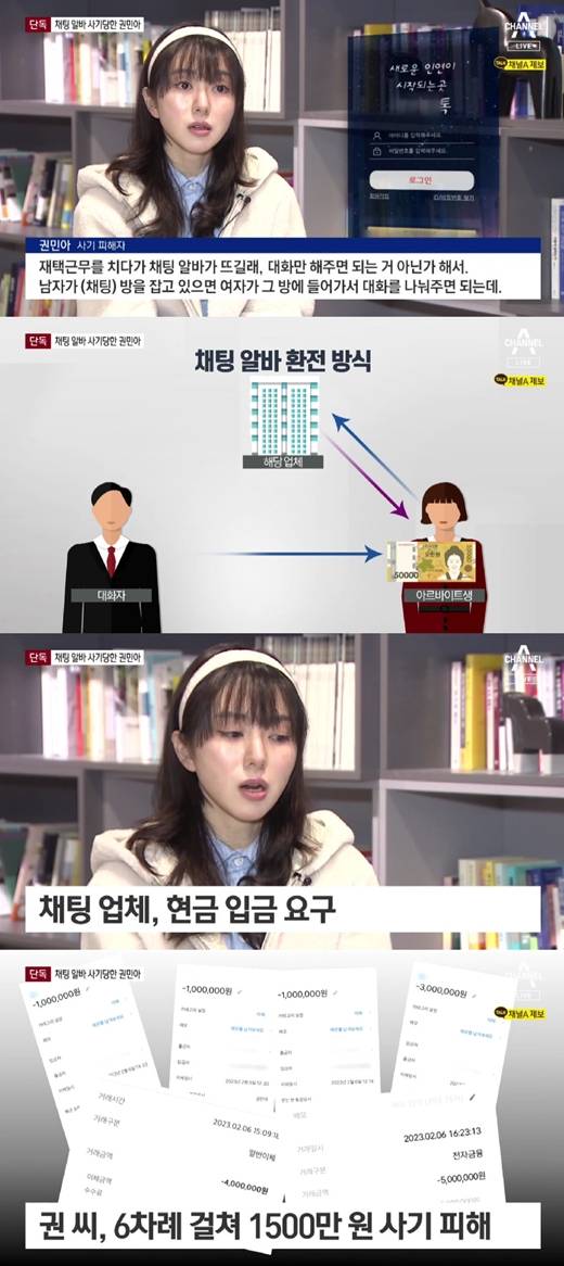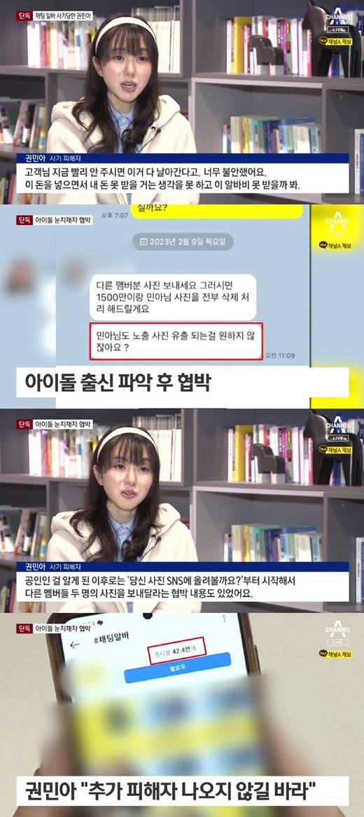 20일 종합편성채널 채널A '뉴스A'는 권민아가 채팅 아르바이트를 했다가 1500만 원의 사기 피해를 당해 경찰이 수사에 나섰다고 보도했다.