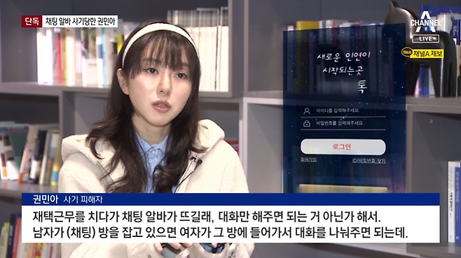 지난 20일 채널A에 따르면 권민아는 지난 6일 고수익을 보장해 준다는 말에 '채팅 알바'를 시작했다. 채팅 알바란 대화를 원하는 상대 남성과 그 방에 들어가서 익명으로 대화를 나눠주면 포인트를 선물 받고, 이를 현금으로 바꿀 수 있는 구조였다.