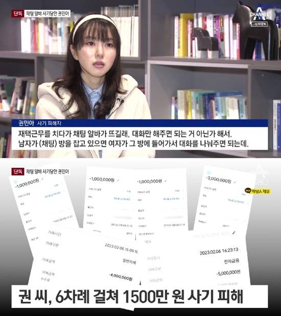 20일 채널A 보도에 따르면, 권민아가 채팅 아르바이트 사기로 약 1,500만 원의 피해를 입었다.
