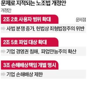 특히 ‘실질적 지배력’ 개념이 불분명해 노사 교섭 때마다 법원 등에서 판단을 받아야 한다는 지적도 나온다. 노동계는 “기존 대법원 판결에서 사용했던 기준”이란 입장이다. 하지만 국회가 법을 만들면서 해석이 모호한 조항을 집어넣는 게 맞느냐는 비판이 많다. 김상민 법무법인 태평양 변호사는 “노조의 교섭 요구를 거부한 사업주가 형사처벌을 받게 되는 점을 고려하면 형벌 규정 내용은 명확해야 한다”며 “개정안은 헌법상 ‘죄형법정주의’ 원칙에 위배될 수 있다”고 말했다.