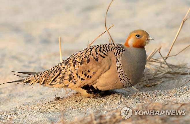 (강릉=연합뉴스) 유형재 기자 = 국내에서는 1947년 이후 76년 만에 처음으로 사막꿩이 최근 강원 동해안에서 관찰돼 눈길을 끌고 있다. 사막꿩의 보호를 위해 정확한 촬영장소와 시간은 공개하지 않는다.