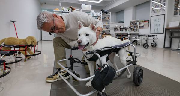 처음엔 일본서 장애견 휠체어 사 와 기부