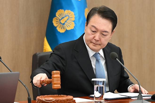 | ▲ 윤석열 대통령이 21일 서울 용산 대통령실 청사에서 열린 제8회 국무회의에서 의사봉을 두드리고 있다. |