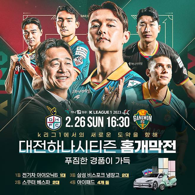 한편, 8년 만에 K리그1에서의 홈 개막전을 맞아 대전하나시티즌은 푸짐한 경품과 다양한 이벤트로 팬들을 맞이한다.