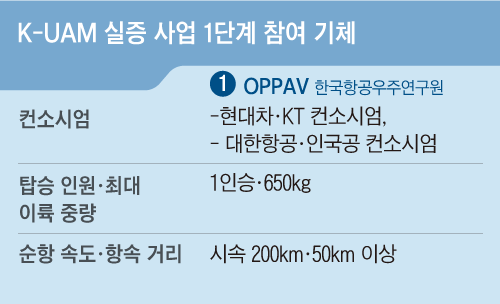 먼저 현대차가 주도하는 ‘현대차·KT 컨소시엄’은 현대차가 기체 운항을 맡고 KT가 관제 시스템을 맡는다. 현대차가 개발 중인 여객용 기체는 2028년 상용화 예정으로 실증 단계에선 한국항공우주연구원이 개발한 OPPAV를 활용한다. 현대차 컨소시엄은 KT가 국내 통신사 중 유일하게 인공위성을 보유해 기지국이 없는 사각지대에서도 통신의 정확도가 높다는 점을 강조하고 있다.