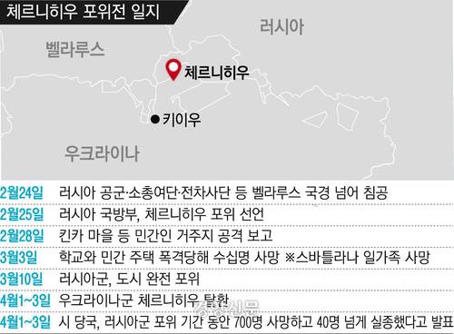 체르니히우는 키이우에서 북쪽으로 약 150㎞, 벨라루스 국경에서 남쪽으로 약 70㎞ 떨어져 있다. 지난해 2월 24일 벨라루스 국경을 넘어온 러시아군이 가장 먼저 도착한 도시 중 하나였다. 키이우로 향하는 길목에 있는 이 도시를 러시아군이 포위하면서 한 달 넘게 처절한 전투가 벌어졌다.