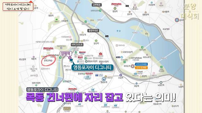 양평역은 오목교역과 영등포구청역 사이에 있는데요. 이 점을 눈여겨볼 필요가 있습니다. 영등포구청역의 경우 2호선과 5호선이 지나는 더블 역세권이죠. 이 단지에서는 도보로 10분 정도가 걸립니다.